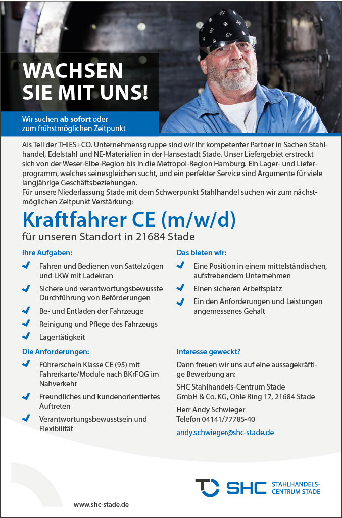 Dass wir beides haben, bezeugt unsere langjährige Geschichte als Stahlhandels-Centrum in Stade.